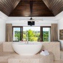 The bedroom is a visual delight too and features a covered balcony and an enormous and luxurious bath that includes a plunge tub in the main living space. A separate shower stall is located adjacent to the tub. There is a king bed and premium entertainment system. The property is also home to an amazing rooftop terrace with panoramic views of the sea and the landscape all around.