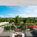 The contemporary villa features an array of amenities typically reserved for more luxurious properties, including a pool terrace, gardens, and more. A main attraction in this compact and yet simultaneously spacious villa is the infinity-edge pool. Shaped like a perfect square, it is surrounded by a large array of mature palms. To one side of the pool is a full-sized sun bed with room for three people at once. Backing up to the villa, the first floor opens into a verandah space where al fresco dining and a barbecue make it easy to start the day or finish it up in a pleasant outdoor setting.