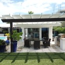 Inside, the interior exudes a timeless elegance, with dark wood furnishings juxtaposed against a backdrop of fresh white and turquoise accents, setting the stage for relaxing days in the sun. Stepping outside, a thoughtfully crafted terrace features a sparkling pool, a poolside bar, and a BBQ area, providing an idyllic setting for casual dining and enjoying sunset cocktails.