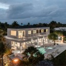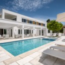 The villa is designed in a contemporary style and uses lines, angles and a palette of bright white to create a truly inspiring impression. It is a two-story property with multiple terraces and balconies. At the back of the villa is a large pool terrace with a pergola. Surrounded by decks, it offers an enormous, open air lounge, covered dining and several sun beds near the Jacuzzi.