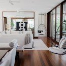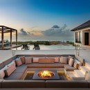 An expansive and elegantly designed structure, it uses modern style alongside classic island features. At the heart of the two-story villa is the pool terrace. It features a full sun deck along with submerged lounges, a pavilion with lounges, and out at the edge of the divide between beach and terrace it offers another full sun deck. The pool terrace also features a wonderful sunken lounge with a fire pit to encourage flawless nights of stargazing.