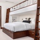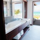 The villa also has those five, opulent bedrooms, and each is a masterpiece of privacy, luxury and great views. Divided between upper and ground levels, the bedrooms include three king-sized suites. All three have ocean views and large, private baths. They also feature balcony or terrace access and several have oversized sitting areas with full sofas gazing out towards the views. The fourth and fifth suites are deemed “family” rooms with oversized bunk beds framing a king bed or dual queen beds with dual bunks. Both have large and private baths of their own.