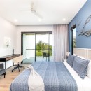 Bedroom 3: Bedroom with a queen-size bed, A/C, ceiling fan, TV, WiFi, desk, access to the terrace, and en-suite bathroom with shower, vanity and WC. 2 guests maximum.