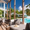 Outside, guests will find lush green grass lawns and swaying palm trees framing an infinity-style pool. It’s the ideal spot to enjoy the beautiful scenery.