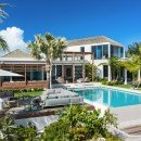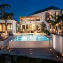 Cabuya, Leeward, Turks and Caicos. The 7,500-ft² six-bedroom, six-and-a-half bath Cabuya Villa is located on seven acres in one of the most exclusive gated communities in Providenciales. Floor to ceiling glass paneling draws the eye to expansive views of turquoise waters and a protected wildlife preserve that beckons beyond. Soaring ceilings lend a sense of airy spaciousness to this luxurious home.