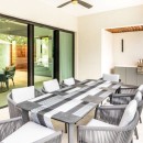 The villa also boasts a variety of indulgent amenities: 5 flat-screen TVs, new sofas, and 6 air conditioning units for your ultimate comfort. Enjoy indoor and outdoor dining spaces, cozy lounge furniture, and high-quality linens throughout the villa.