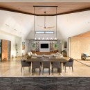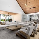 Inside, the villa boasts soaring ceilings, open concept living spaces, and a calming color palette that creates a peaceful ambiance. The large kitchen island is perfect for social cooking, while the sectional sofa is ideal for unwinding with a book or watching a movie.