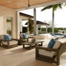 Villa Rehab offers a serene escape with its stunning canal views and welcoming decor both inside and out. This modern Caribbean retreat is designed for families looking to disconnect from their busy lives. The outdoor spaces are a highlight, featuring palm-shaded areas perfect for enjoying Provo’s warm weather and turquoise seas. The centerpiece of the tiered terraces is the sparkling infinity pool, which seems to blend seamlessly with the canal. For sea enthusiasts, the private dock is a standout feature, providing easy access for jet ski rentals or boat charters that pick you up right from the villa.