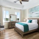 Finally, the main bedroom rests on the second floor. A king-size bed beckons you to come in and relax for a while. The ocean view is a little glimpse of paradise. The en suite to this room also features a bathtub, shower, vanity, and WC.