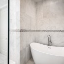 The third bedroom out of four features a double bed. This room has a canal view. The en suite boasts a bathtub, shower, vanity, and WC.