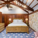 Outside, a traditional gazebo equipped with a dining area, barbecue, and bar is perfect for entertaining, alongside a rooftop deck offering breathtaking views of the nearby cay—ideal for sunset cocktails. A 360-degree wraparound veranda at canopy level connects the indoors to the lush outdoors, inviting the refreshing trade winds inside. Below, the serene infinity pool beckons, and meandering trails lead through beautifully curated gardens filled with mature palms and fragrant tropical plants, guiding guests to the golden sands of The Catch’s private beach and its inviting azure waters, just steps away.