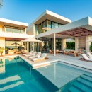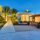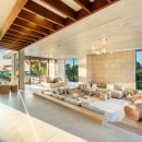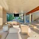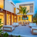 The residence offers an array of opulent amenities, including an ocean floating lounge, two beach decks, a dining courtyard, and a cascading waterfall. Spanning 1.1 acres, the securely gated property boasts 80 feet of beach frontage. Guests can indulge in the pleasures of a heated swimming pool, a dipping pool and bar, and two beachfront terrace fire pits.