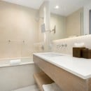 Bedroom 4: Ground floor bedroom with a king-size bed, A/C, TV, and en-suite bathroom with bathtub, vanity and WC. 2 guests maximum.