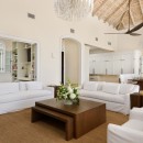 Villa Shambhala is available for rental as either an eight-bedroom estate or separately as a five-bedroom beachfront villa and a three-bedroom beach view villa. When rented separately, each property ensures utmost privacy, with the only shared amenity being the tennis courts.