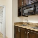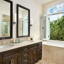The separate chef's kitchen is a culinary enthusiast's dream, equipped with state-of-the-art appliances, granite countertops, tumbled marble backsplashes, and custom Guatambu hardwood cabinets imported from Argentina.