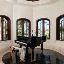 Spaces to relax and hang out are found throughout the villa, including a three-level library. It has 45-foot ceilings, a small bar on the top level with views of the sound, and a hardwood spiral staircase. On the outside, there are also plenty of places to explore with gorgeous landscaping to tie together everything.
