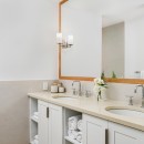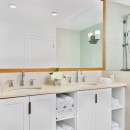 The kitchen appliances are cleverly concealed behind custom carpentry, presenting a sleek, modern appearance. Fully equipped with all kitchen amenities, it awaits the talents of your private chef.