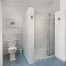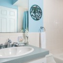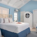 Two of the three bedrooms are king-sized, while the upstairs room is a queen. Each room has air conditioning, a ceiling fan, a flat screen television, and an en-suite bathroom with a shower, water closet, and vanity. Each bathroom plays with sea foam green, blue, or white tile as if a wave has swept through Villa On the Rocks and left its colors behind. The master king bedroom has a garden terrace with seating and sunset views and further views can be had from the poolside deck, a hammock in the seaside gazebo, or the veranda set.