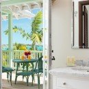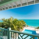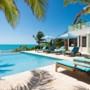 Overlooking the lovely Sapodilla Bay in Turks & Caicos, the Villa Turquesa is a stunning example of Caribbean design and décor along with luxurious amenities. Part of a private community, it is a spectacularly scenic property that features an appealing palette chosen to emulate the setting. Sea greens and blues, turquoise and white all come together to create a casual and yet stimulating setting indoors and out. The waterfront property has a private staircase and dock to the waterfront where guests can snorkel and launch kayaks and paddleboards.