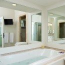 Bedroom 3: Main floor bedroom with a king-size bed, A/C, TV, direct pool access with ocean views and en-suite bathroom with shower, vanity and WC. 2 guests maximum.