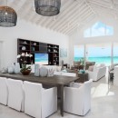Inside, you'll find a canopy-style indoor/outdoor dining area that invites you to savor your meals while enjoying the breathtaking ocean and water views that Emerald Bay offers from every room and vantage point. The contemporary and sleek aesthetics, combined with the villa's private location accessed via a private road, create an ideal setting for a comfortable, chic, and rejuvenating island getaway.