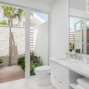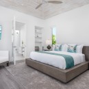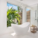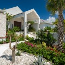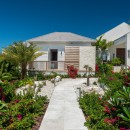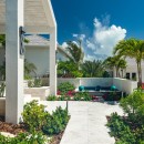 Comprised of a main villa and two guest pavilions, Emerald Bay is perfect for groups of families or friends. Upon arrival, you'll be greeted by modern landscaped grounds, where a stone pathway winds its way past palm trees and cacti. An attractive water feature and bursts of bougainvillea catch the eye, beautifully complementing the property's minimalist exterior, crafted with natural wood and stone.