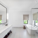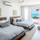 Bedroom 4: Main floor bedrooms with two queen-size beds, A/C, TV, access to pool terrace and en-suite bathroom with shower, double vanity and WC. 4 guests maximum.