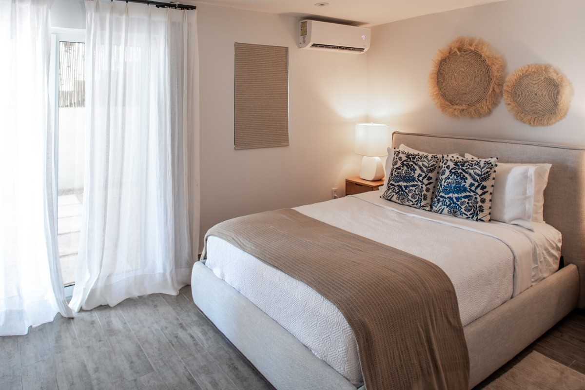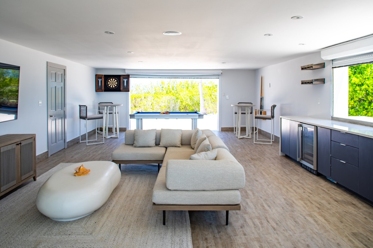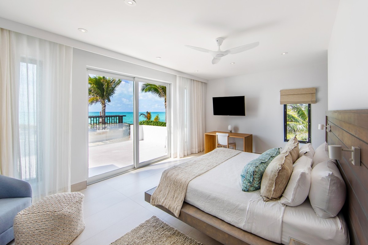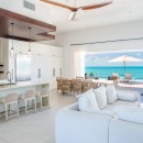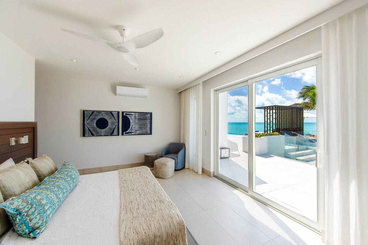 The villa blends the sleek energy of Miami with the soft, coastal charm of Mykonos. Its clean white exterior and bold lines are designed to reflect the sun and highlight the natural beauty around you. At the center of it all is a stunning glass-walled pool that seems to merge into the ocean. With customizable LED lights and a villa-wide Sonos sound system, it’s perfect for everything from peaceful night swims to lively poolside gatherings.