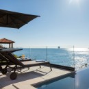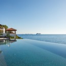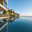 Among these, four bedrooms open onto balconies that overlook the azure sea, while the guest house suite boasts its kitchenette and a private lounge area.