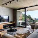 The open-plan living area is bathed in natural light, thanks to expansive floor-to-ceiling glass walls that seamlessly integrate the indoors with the villa’s stunning surroundings. A formal dining area for ten and a contemporary kitchen — complete with a central island and wine fridge — create the perfect setting for shared meals and sophisticated gatherings.