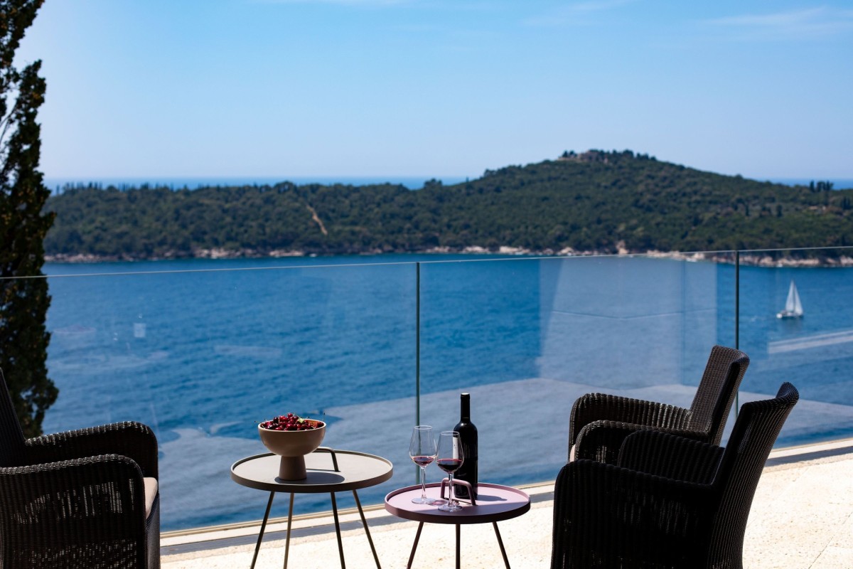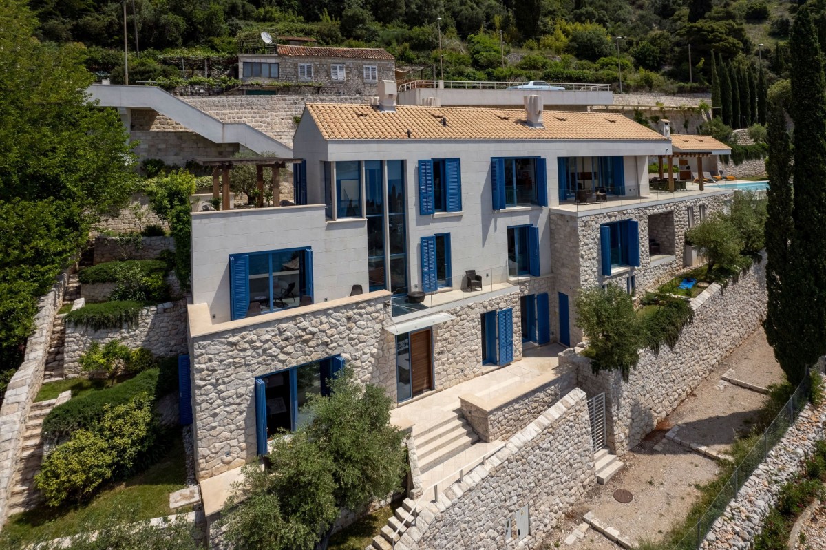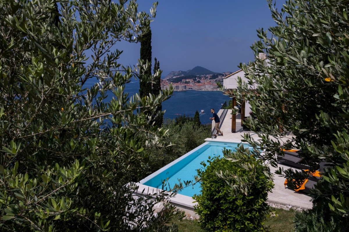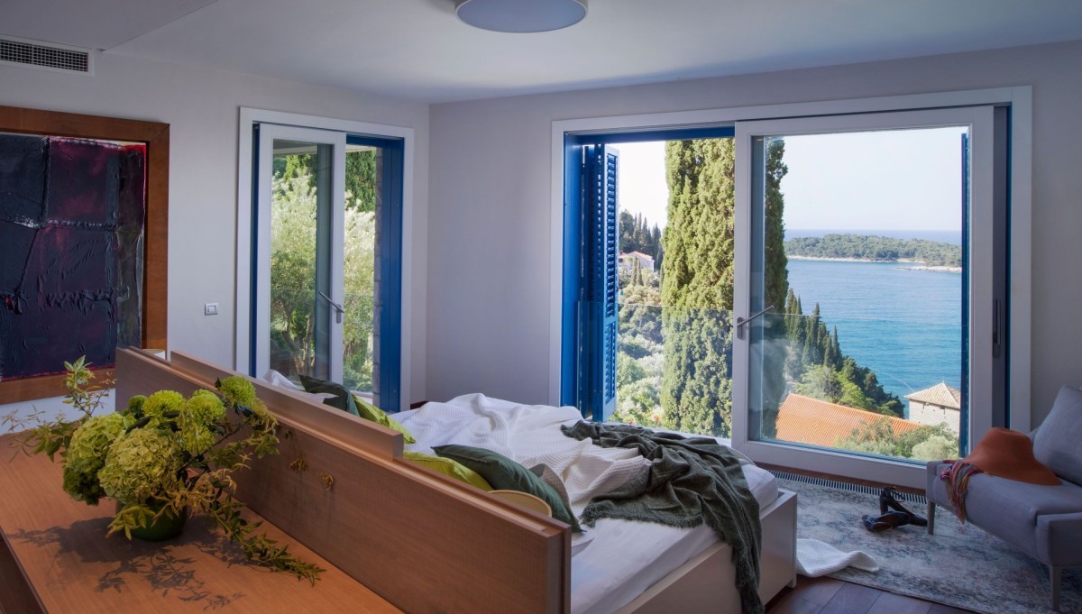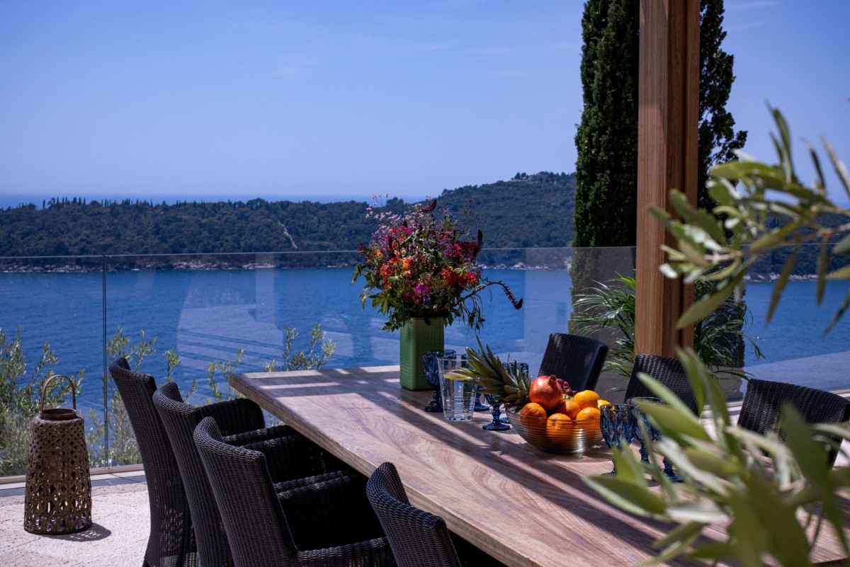 The interiors feature four luxurious bedrooms, each with a private terrace and breathtaking sea views, a spacious living area filled with natural light, complete with a fireplace and carefully selected artworks, and a fully equipped modern kitchen. Designed for total relaxation and indulgence, the villa also offers a Finnish sauna, a massage room, an infinity swimming pool, multiple panoramic terraces, an outdoor kitchen, and beautifully landscaped Mediterranean gardens with olive trees—creating an idyllic setting for an unforgettable luxury stay in Dubrovnik.