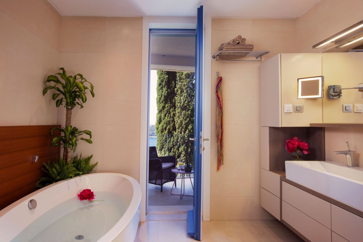 Bedroom 1: Bedroom with a king-size bed, A/C, WiFi, balcony, sea view, and en-suite bathroom with shower, bathtub, vanity, and WC. 2 guests maximum.