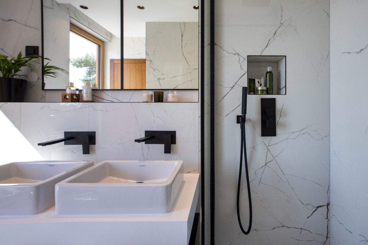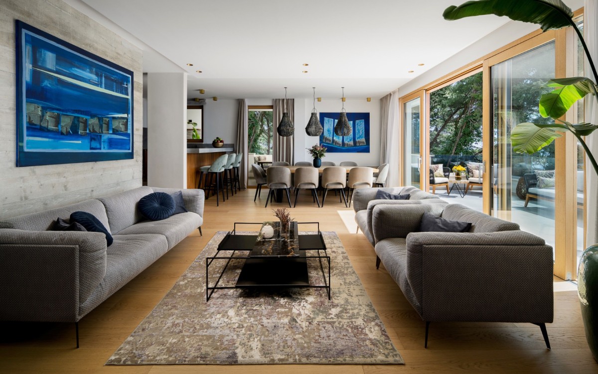 Spanning 350 m² across multiple levels, the villa features six generously sized bedrooms and eight beautifully appointed bathrooms, each designed to ensure maximum comfort and privacy. The open-plan living area extends effortlessly onto a spacious terrace, creating the ideal setting for both relaxing and entertaining while soaking in the stunning surroundings.