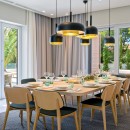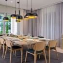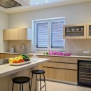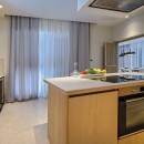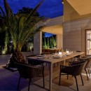 Accessed from the terrace, the open-space ground floor boasts a roomy living area, a dining section with a table for 10, and a modern, fully-equipped kitchen with all the necessary appliances to meet guests' needs. One of the master bedrooms, complete with an en-suite bathroom and terrace access, is also located on this floor. The entire villa is air-conditioned, and Wi-Fi is readily available.