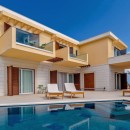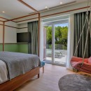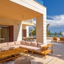 Internal stairs lead to the first floor, where four additional bedrooms, each with its own en-suite bathroom and private balcony, offer a breathtaking sea view. Fully air-conditioned, this floor provides a five-star hotel experience for all guests.