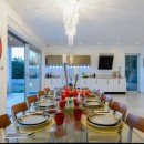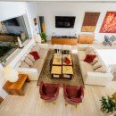 Awe-inspiring from the outset, Casa del Mare unveils its splendor with a captivating impact. Amplified by expansive windows and an artful interplay of pristine whites, the 500-square-meter interior spaces bask in the embrace of abundant daylight, while treating occupants to captivating vistas that encompass Daksa Island, the picturesque Grebeni rocks, and the crystalline expanse of the Adriatic Sea. Every facet of this abode has been meticulously curated, from Swarovski chandeliers to opulent Persian rugs, alongside an impressive collection of 20th-century art and sculpture, all chosen with precision to cultivate a sophisticated yet inviting ambiance. Travertino Navona marble gracefully extends across communal areas, bestowing a refreshing coolness to sunlit summer days. Croatian oak floors instill a touch of warmth within the bedrooms, while the bathrooms are adorned with luxurious marble, including unique variants like the exquisite Travertino Giallo Unique, sourced from the lofty altitudes of South America.