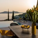 Distinguished by its five luxuriously appointed bedrooms, each accompanied by its own en-suite bathroom, the villa promises a fusion of opulence and solace, all while indulging in direct sea views that frame captivating sunsets. Villa Helios embraces a fully-equipped kitchen and a modern living space, seamlessly connecting to an expansive terrace that hosts an inviting infinity swimming pool and an al-fresco dining haven complete with a barbecue. Ascend to the upper floor to discover a well-appointed, air-conditioned gymnasium, thoughtfully furnished with a cross trainer, bicycle, yoga ball, and plush yoga mats, catering to your well-being needs.