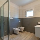 The ground floor hosts two inviting bedrooms, each accompanied by its own en suite bathroom and a separate toilet. The first bedroom exudes comfort with an Internet connection, an A/C unit, and a remote controller for external blinds. This haven features a generous mattress measuring 200 cm x 210 cm, adjoined by a bathroom boasting a shower (120 cm x 90 cm), bidet, washbasin, WC, and a hairdryer.