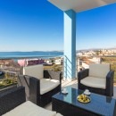 The first floor is home to two elegant double bedrooms, each with its own en suite bathroom, along with a convenient toilet/utility area and a well-appointed kitchen/dining room/sitting room space. The first double bedroom offers an Internet connection, an A/C unit, and a remote controller for external blinds, paired with a mattress measuring 200 cm x 210 cm. Its en suite bathroom showcases a shower (120 cm x 90 cm), bidet, washbasin, WC, and a hairdryer. The second double bedroom mirrors these features and adds an extra touch of luxury with an additional bathtub. The practical toilet/utility area on this floor houses a washbasin, WC, washing machine, iron, cot, and a high chair catering to young guests under five years of age. The inviting kitchen/dining room/sitting room area is graced by cable TV, two A/C units, and offers access to two charming balconies.