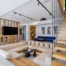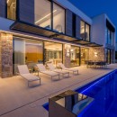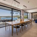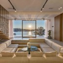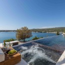 As you approach the villa, you’ll be greeted by expansive, sunlit terraces and a 28-meter pool with an integrated jacuzzi, ideal for swimming or simply soaking up the sun. The generous outdoor patio features an alfresco dining area and a cozy lounge corner—perfect for sipping cocktails, watching stunning sunsets, and gazing out over the shimmering Adriatic Sea. Inside, the villa’s open-plan layout and floor-to-ceiling windows beautifully blend indoor and outdoor spaces. The chef’s kitchen is paired with a large wooden dining table for ten, offering a lovely setting to enjoy meals with a poolside view. An elegant living room with a sunken conversation pit provides a cozy spot to relax, whether for a movie night or simply to enjoy the sweeping coastal vistas.