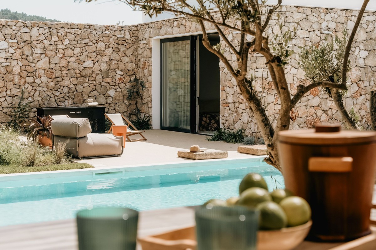 Designed for sharing and connection, the property unfolds through inviting lounges and outdoor salons that transition seamlessly from day to night. Whether in quiet contemplation or convivial gatherings, each space invites guests to savor the island’s natural beauty.