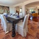 The outdoor realm is a haven of delights, featuring a refreshing swimming pool, an outdoor kitchen, and a serene relaxation zone. The second-floor terrace is a haven for a morning coffee, a vantage point from which you can marvel at the meticulously tended orchards, olive groves, and vineyards that paint the surroundings. This terrace also offers ample sunbathing space, ensuring both leisure and indulgence.