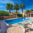 This opulent villa, boasting a private pool, presents an exceptional opportunity for those seeking a blend of affordability and elegance, nestled within the charming confines of Sumartin. Generosity of space harmonizes with lavish furnishings, truly encapsulating the essence of luxury. Here, you're invited to bask in regal ambiance, with sumptuous baths, throne-inspired furniture, and an outdoor expanse that beckons you to revel in Croatia's sunset hues while indulging in culinary delights prepared on the stone BBQ. The fully equipped kitchen and dining area stand ready to host cherished moments with loved ones. The dining table, accommodating up to 8 guests, provides a setting adorned with Renaissance art gracing the walls and panoramic vistas streaming in through expansive windows.