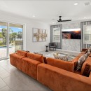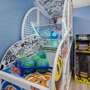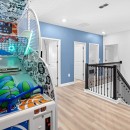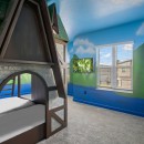 The enchantment continues within the five elegantly appointed bedrooms, each adorned with high-end furnishings, sumptuous bedding, and a coastal-inspired charm that ensures your comfort. Younger guests will eagerly anticipate bedtime when they discover the captivating Storybook Village-themed bedroom, featuring cleverly concealed bunk beds and vibrant wall art, promising hours of immersive fun.