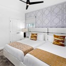 Bedroom 5: Second floor bedroom with two queen-size beds, A/C, ceiling fan, TV, WiFi, and shared bathroom with shower, vanity, and WC. 2 guests maximum.