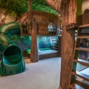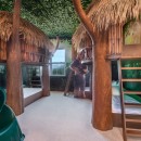 The adventure continues on the second floor, starting with the super cool Game Loft/Office. Play air hockey, shuffleboard, or catch up on work at the desk-and-chair setup. Your smallest guests will be delighted by the Themed Bedroom, a "Secret Galaxy" room with bunk beds resembling treehouse dwellings and a twisty slide for added excitement.
