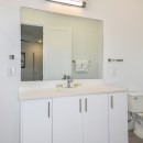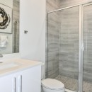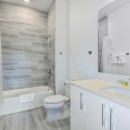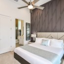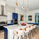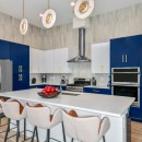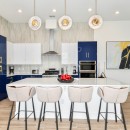The kitchen and dining area will captivate the culinary enthusiasts among your group. The open-concept kitchen boasts modern stainless appliances, stylish blue and white custom cabinetry, high-end fixtures, and natural woodgrain floors. Gather around the kitchen island for appetizers or head to the spacious dining area with a generously sized table for a feast.
