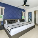 Bedroom 4: Second floor bedroom with two queen-size beds, ceiling fan, A/C, TV, WiFi, and en-suite bathroom with shower, vanity and WC. 2 guests maximum.