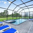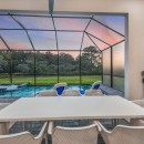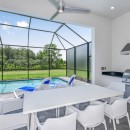 Step outside to the private pool and patio—an essential feature of any Florida retreat. Take a refreshing dip in the spillover spa, float on a raft, or relax on a lounger with a good book. The outdoor kitchen, equipped with a built-in grill, allows you to prepare delightful poolside bites or enjoy them in the shaded lanai with a table for eight.