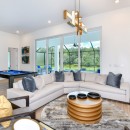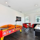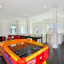 Ascend to the upper level, where the game loft offers ample lounging and play space, complete with air hockey and more. A desk-and-chair set-up allows you to mix work with leisure.